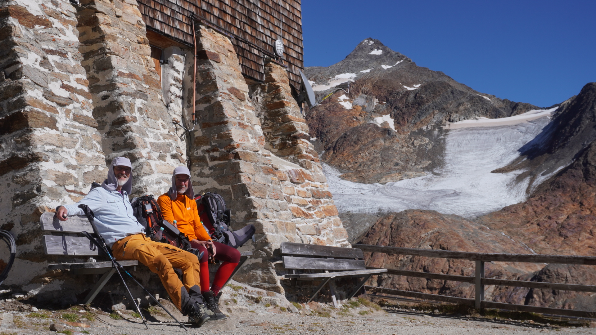 Die erste Hütte auf unserer geplanten Runde, das Brunnenkogelhaus, liegt auf 2.739 m. Von 0 direkt auf die Höhe resultiert bei mir in Kopfschmerzen und Tränensäcken unter den Augen – Akklimatisation fällt mir halt nicht mehr so leicht wie in meiner Jugend. Deswegen verbringen wir zwei Nächte in knapp 2.000 m auf Kleble und auch . . .