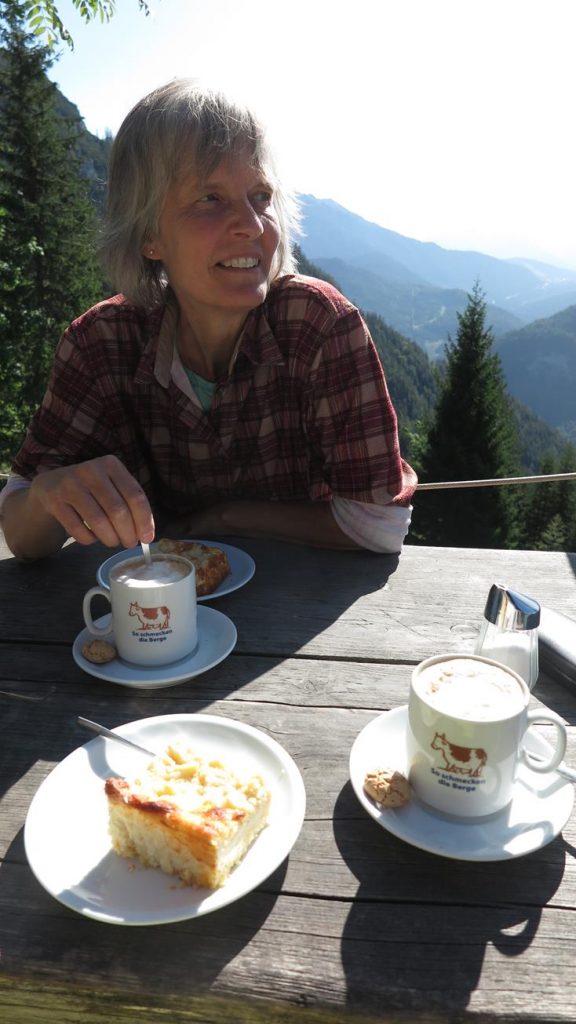 Nach vier Kilometern auf dem Grat ist der Spaß vorbei und es folgt ein steiler Abstieg zur Brunnsteinhütte, die uns mit Kaffee und Kuchen verwöhnt, bevor wir auch noch die restlichen 600 Höhenmeter ins Tal unter die Profilsohlen nehmen.