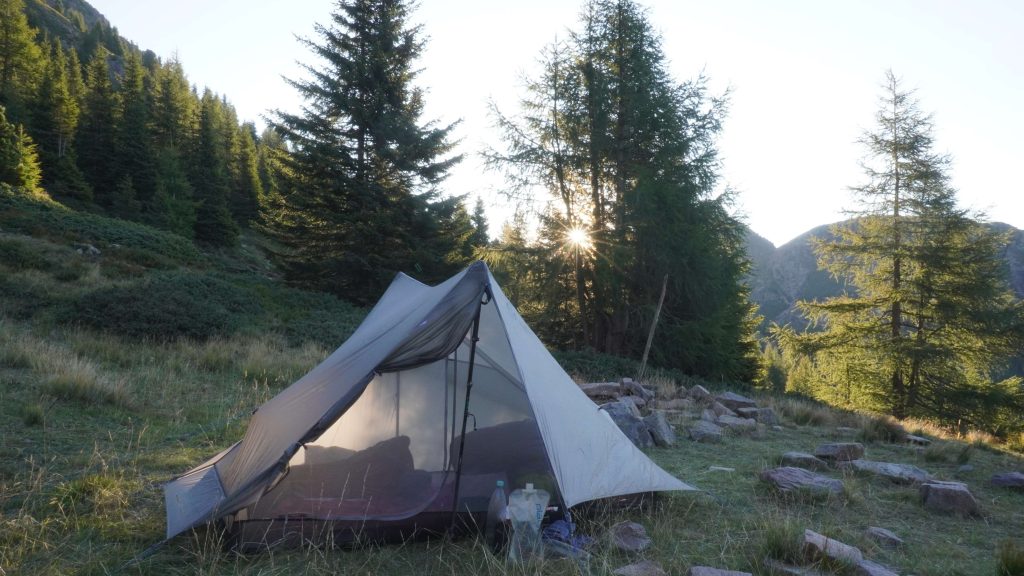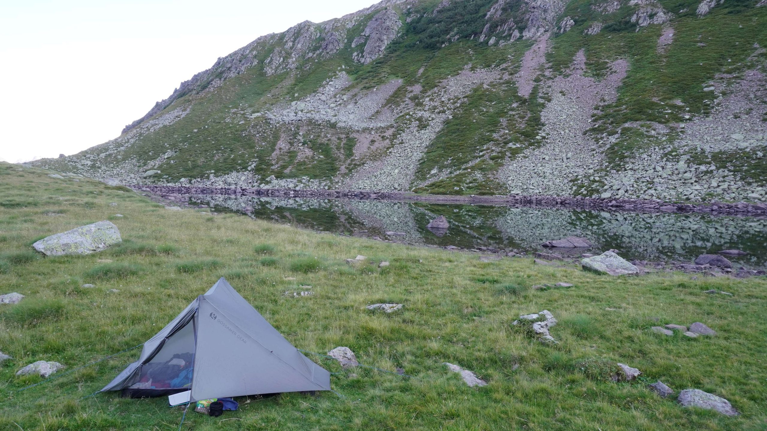 Ausgeruht(er) geht’s weiter. Ich laufe noch ein paar Kilometer, bis ich an einem See mein Zelt aufschlagen kann. Vollbad, Abendessen und alles ist gut!
