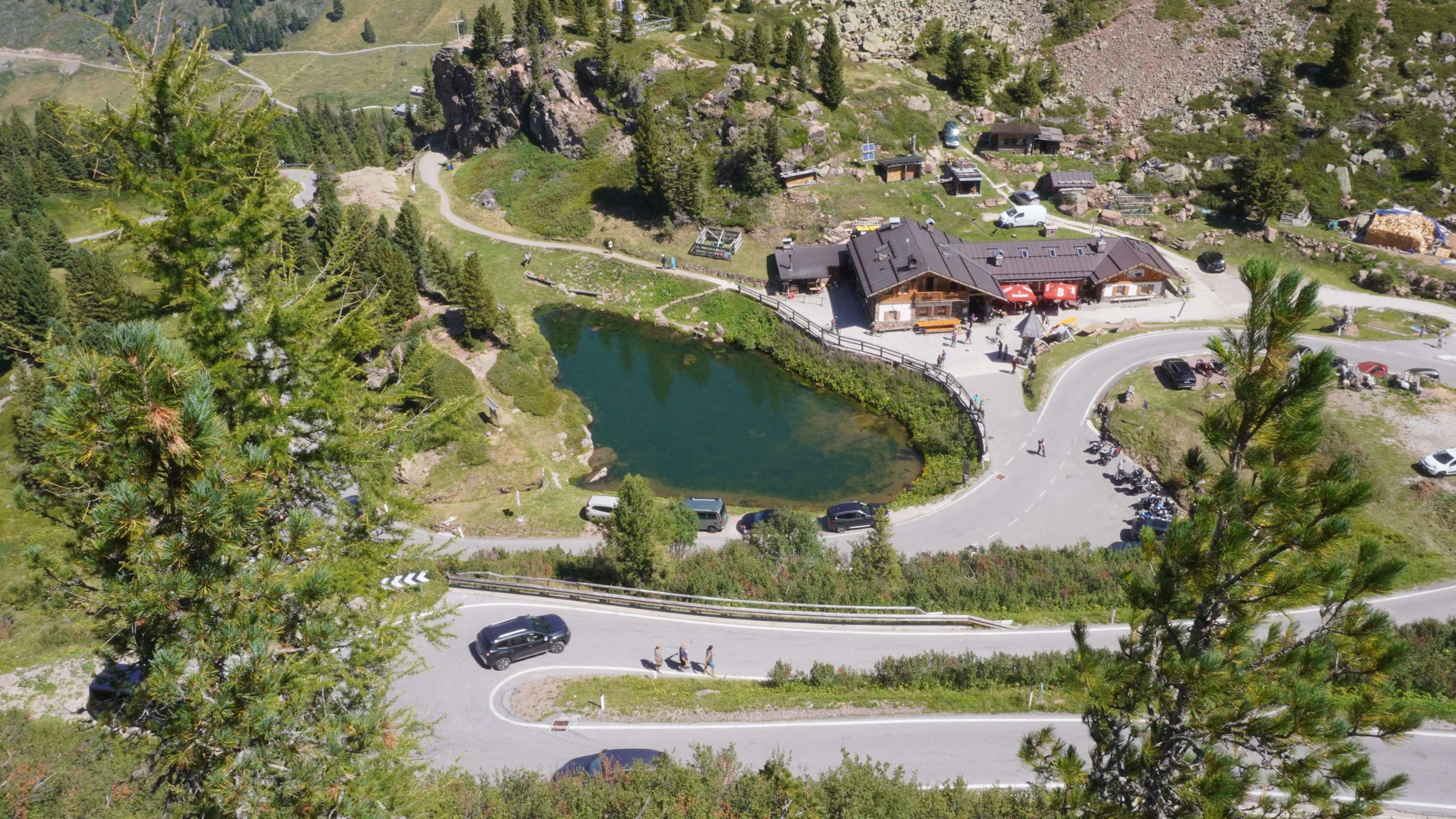 Am Pass tobt der Bär. Fahrräder, Motorräder und Autos bevölkern die Parkplätze. Kein Wunder, es ist Samstag und schönes Wetter!