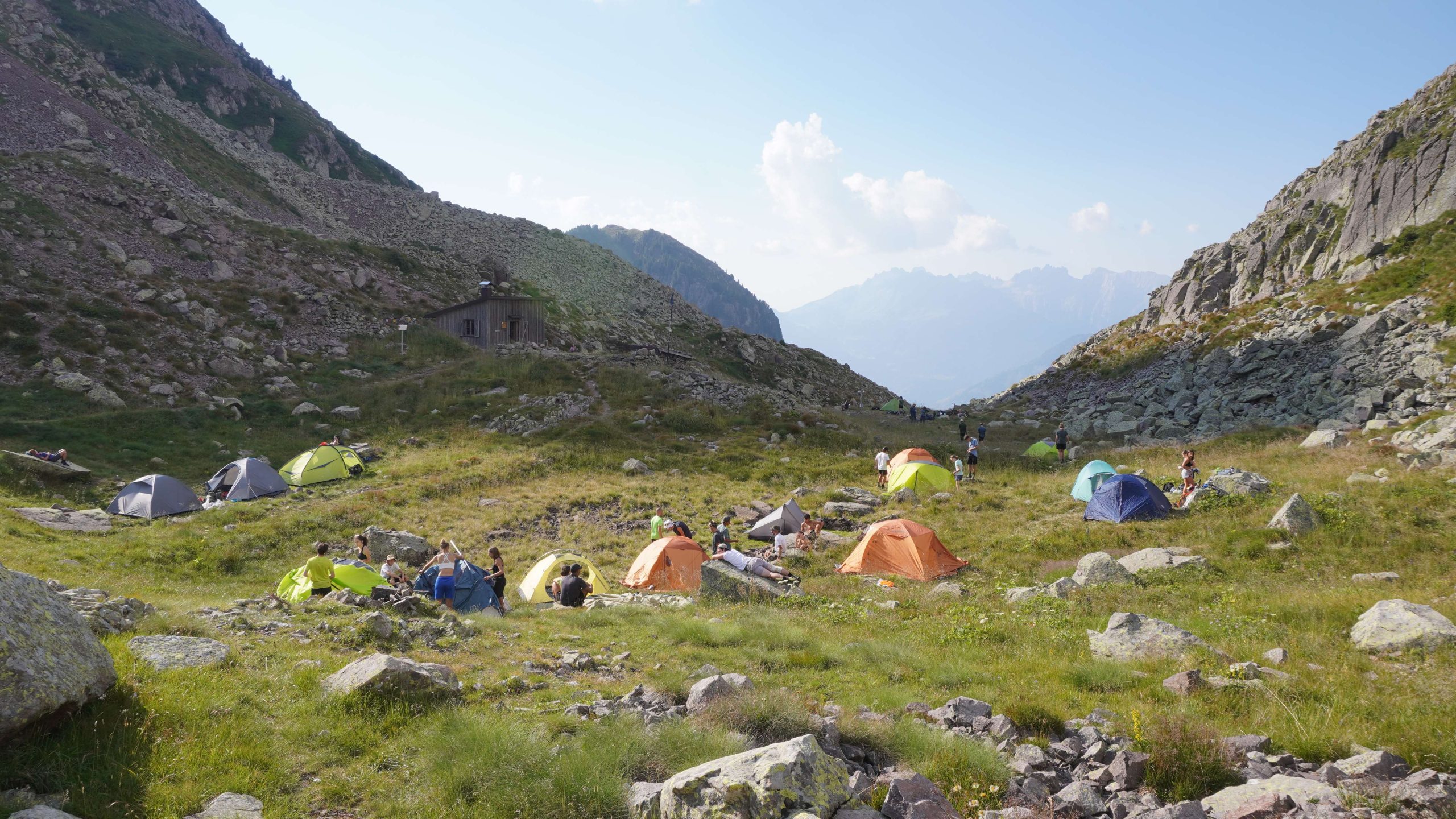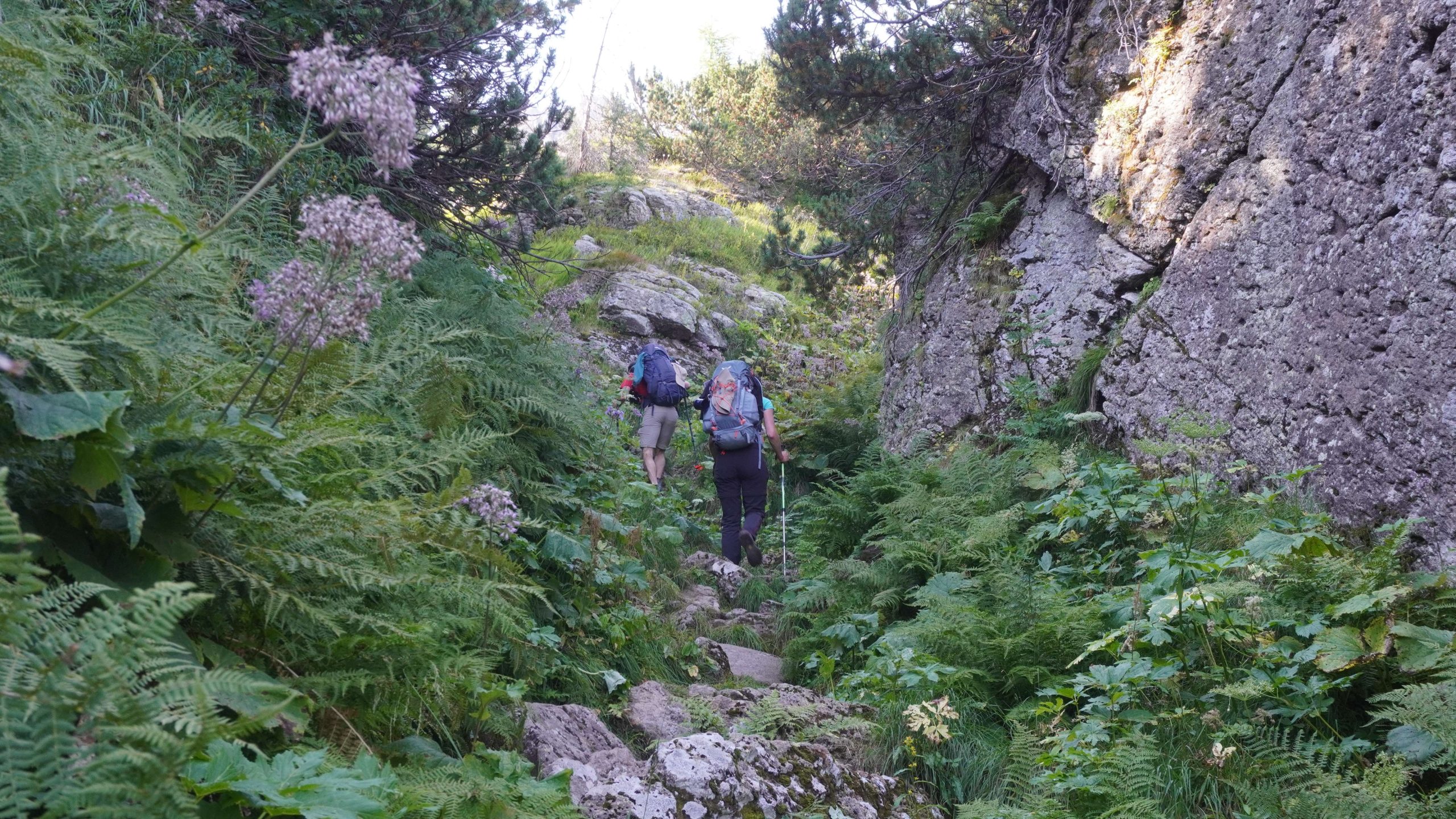 Als mich gerade ein junges Paar überholt hat, das auch in der Hütte übernachtet hatte, habe ich plötzlich eine große Jugendgruppe vor mir. Zum Glück machen die gerade Pause und ich kann vorbei gehen. Aber vermutlich haben wir alle das selbe Tagesziel: das Bivacco Paolo e Nicola. Na, das wird wohl voll werden da oben!