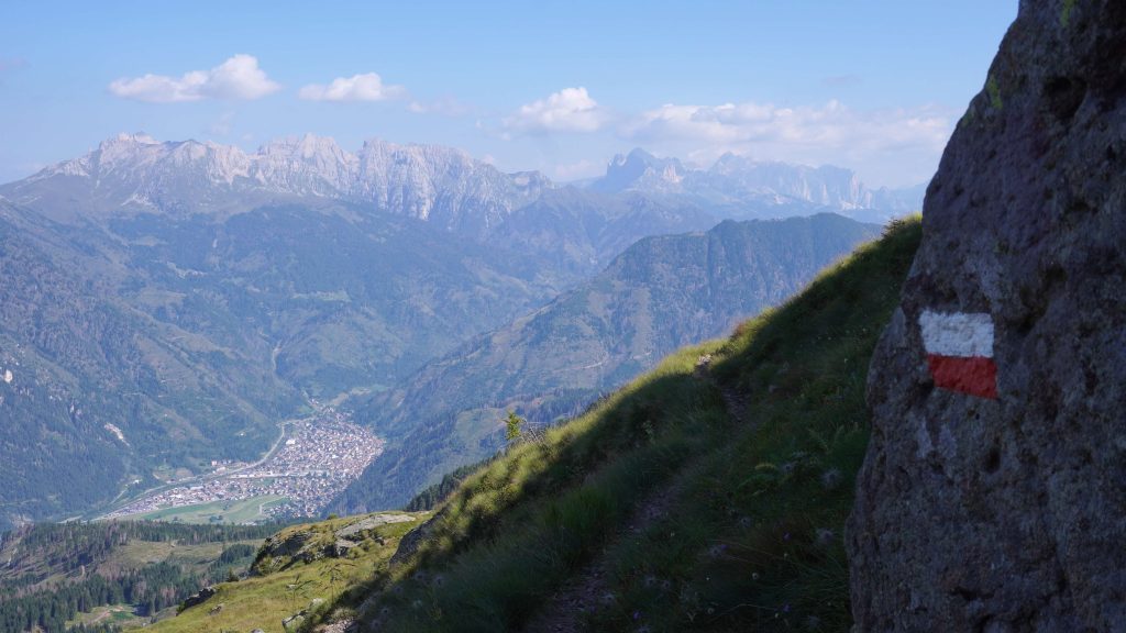 Die Bewölkung nimmt zu. Immer noch Schönwetterwolken? Ich gehe weiter. Beim anschließenden steilen Aufstieg zur Forcella Morenga bin ich allerdings froh, dass sich die Sonne immer wieder zurückzieht.