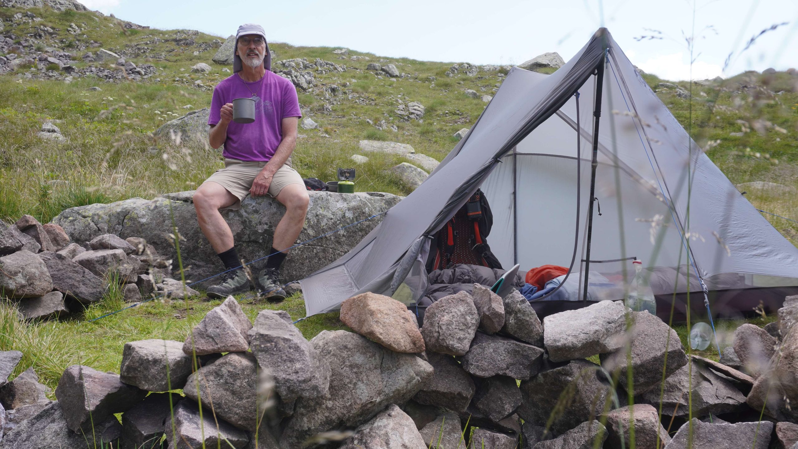 Nachdem ich mein Zelt alleine auf weiter Flur aufgebaut habe, hole ich Wasser an der fünf Minuten entfernten Quelle, koche Tee und mache mir einen gemütlichen Nachmittag.