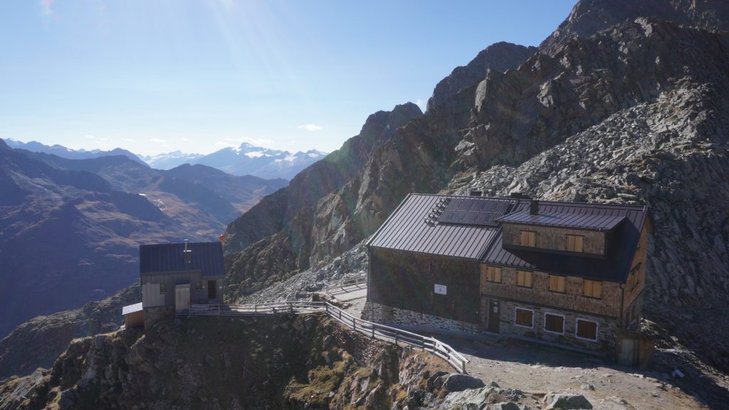 Wir sind am frühen Nachmittag an der Hütte, sitzen in der Sonne, genießen die Aussicht, Essen, sitzen in der Sonne, trinken einen Kaffee, sitzen in der Sonne… Mann, haben wir’s gut!