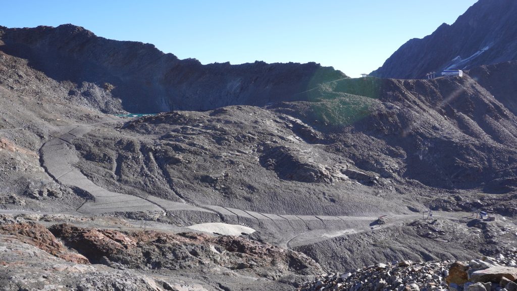 2) runter zum Gaiskarferner und auf der rechten Seite durch die Baustelle